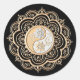 A symmetrical mandala design featuring intricate a yin yang floral pattern in gold and silver.