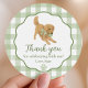 Say thank you in the sweetest way with these golden retriever birthday thank-you stickers! Featuring a playful puppy with a green gingham bow and matching checkered border, these personalized thank-you labels are the perfect finishing touch for your party favors, envelopes, or treat bags.