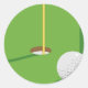 Ilustração de um verde de golfe com o buraco no chão e uma bola de golfe pronta para entrar. Imagem disponível em vários presentes e produtos. Adesivos.