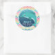 Personalize este adesivo de chá de fraldas fofo e personalizado com golfinho de desenho aquático subaquático e bordel colorido, rosa, amarelo, laranja e faixa azul de gérron, adicionando mamães ao nome de ser. É um autocolante neutro excelente para chás de temas como o oceano, o oceano, o oceano feminino. Os adesivos menores podem ser usados como selos de envelopes para convites para chuveiros de bebês ou cartões de agradecimento. Use este adesivo de chá de fraldas legal em favoritos para festas, presentes e decorações, decoração.