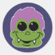 O sorriso adorável tem pele verde, cabelo roxo, presas e olhos de suor. Um presente divertido para o Halloween ou todos os dias.