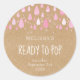 Gotas de chuva rosa bebê chic caem em direção aos seus detalhes personalizados em um fundo rústico boho kraft, neste adesivo de chá de bebê girl pronto para estourar, sprinkle ou chá de casais. Ideal para selar envelopes de convites ou lembrancinhas. Criado por Thisisnotme