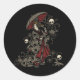 Essas camisetas gráficas e outros itens têm uma imagem de uma gueixa segurando um parasol, mas em um esquema de cores elegantes com crânios