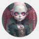 Adesivo Redondo Gótico Menina Rosa Negra Cachorra Negra