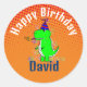 Bela animação t-rex dino! Design de desenho original. Rawr! Cartazes de aniversário para crianças. Edite o nome para personalizar este adesivo. Excelente para embalagem de presentes, decoração de festas e rotulagem.