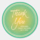 Na moda Agradecemos os adesivos redondos com um fundo verde e laranja claro que tem um aspecto sutil de inclinação/meteorito e a palavra "Obrigado" em um script de escova de tendência. Use-o para selar seus envelopes, favorecer bolsas ou decoração. Confira o convite correspondente do Sweet 16 Birthday em minha loja aqui -> http://www.zazzle.com/coral_teal_gradient_sweet_16_birthday_invitation-256237905882397365?rf=238364477188679314 Personalize-o com seus detalhes substituindo o texto do marcador de posição. Para obter mais opções, clique no botão "Personalizar". *Observe que a Marca d'água do Zazzle que aparece na visualização de zoom NÃO aparecerá no produto impresso final. © Rosewood e Citrus
