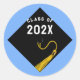 Classe de "25 selos de envelopes de graduação, etiquetas a favor de partidos e etiquetas a favor de formandos com boné preto com fita de ouro sobre fundo azul claro. Editar texto para personalizar.