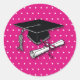 Adesivo Redondo Graduação, Bolinhas Rosa, Diploma