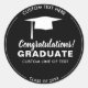 Adesivo de graduação em sua cor escolar com boné branco e espaço para 4 linhas de texto personalizado. Adicione o nome da sua escola, o nome do formando, parabéns, etc. Altere facilmente a cor de fundo para corresponder à cor da sua escola - basta clicar em personalizar e rolar para baixo até o selecionador de cores. Perfeito para festas de formatura, anúncios, tratamento de bolsas, etc.