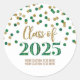 Classe de nome personalizado de adesivos de graduação 2025 com padrão de ouro e confete verde.