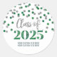 Classe de nome personalizado de adesivos de graduação 2025 com padrão de configuração prateado e verde.