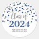 Classe de nome personalizado de adesivos de graduação 2024 com padrão de confete prateado e azul.