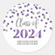 Classe de nome personalizado de adesivos de graduação 2024 com padrão de confete prateado e roxo.
