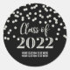 Classe de nome personalizado de adesivos de graduação 2022 em padrão de confete preto e prateado.