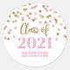 Classe de nome personalizado de adesivos de graduação 2021 com padrão de configuração dourado e rosa.