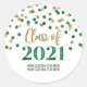Classe de nome personalizado de adesivos de graduação 2021 com padrão de ouro e confete verde.