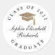 Este adesivo clássico elegante de graduação de na moda apresenta um simples design preto e branco com boné de formatura dourado e texto personalizável. Elementos de coordenação disponíveis na Coleção de Graduação de Script Clássico por Stacey Meacham. Clique no botão editar para personalizar este design.