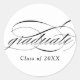 White Modern Elegant Script Graduation Classic Round Sticker apresenta um roteiro bonito e elegante, juntamente com o ano de sua classe.