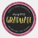 adesivo de graduação em na moda redondo com borda cintilante cor-de-rosa falso e a palavra "Formando" em folha de ouro falso de tendência. Personalize-o com seus detalhes substituindo o texto do marcador de posição. Para obter mais opções, como alterar a fonte, o tamanho/cor do texto, o espaçamento entre letras ou para contrair ou expandir o texto curvo, clique no botão "Personalizar". *Observe que a Marca d'água Zazzle que aparece na visualização de zoom NÃO aparecerá no produto impresso final © Rosewood e Citrus