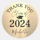 Ouro metálico falso moderno e graduação negra OBRIGADO VOCÊ A preferir adesivos ou selos de envelopes com o script manuscrito Classe de ano (editável para qualquer ano) com o boné de formatura e o nome do formando na sua escolha de estilos de fonte. ASSISTÊNCIA: para obter ajuda com a modificação ou personalização do design, alteração de cor, transferência do design para outro produto ou você gostaria de coordenar itens, entre em contato com o designer ANTES DE ENCOMENDAR através da guia MENSAGEM de bate-papo Zazzle abaixo ou envie um e-mail para makeitaboutyoustore@gmail.com.
