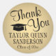 Adicione um toque elegante personalizado à graduação da faculdade ou do segundo grau, obrigado a cartões e favoritos para festas com adesivos redondos e dourados / selos de envelopes. Todo texto é simples de personalizar. Design apresenta um fundo de folha falsa, boné de conselho de argamassa preta e tipografia de script do estilo caligrafia moderno. Observe que o ouro é impresso a cor, não a folha metálica. Parabéns ao formando!