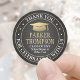Adicione um toque elegante personalizado à graduação da faculdade ou do segundo grau, obrigado a cartões e favoritos para festas com adesivos pretos, brancos e dourados / selos de envelopes. Todo texto é simples de personalizar. Design apresenta um fundo metálico esfregado preto, boné de conselho de folha de alumínio falso e tipografia moderna. Observe que o ouro é impresso a cor, não a folha metálica. O texto inclui o ano da aula, o nome da escola e uma linha opcional para o grau, as honras ou a citação de inspiração favorita. Para usar como etiquetas de endereço de volta redonda nos convites ou em notas de agradecimento, mude o texto curvo para um nome e endereço. Parabéns ao formando!