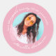 Comemore sua graduação com estilo e elegância com este adesivo de graduação rosa-retrô moderno! Apresentando um espaço fotográfico para adicionar um toque especial ao design, este adesivo na moda é perfeito para qualquer celebração. Adicione isso aos seus favores, presentes e muito mais! Prepare-se para comemorar seu dia especial com este design de um tipo!