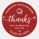 Adesivo Redondo Graduação Vermelho Moderno Obrigado Rótulo Coraçõe