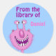 O monstro bonitinho neste livrinho infantil é rosa com dois olhos nas extremidades de pedúnculos longos. Tem uma barba rosa felpudo e um sorriso grande com muitos dentes. Os autocolantes dizem, "Da biblioteca de." Substitua o nome do exemplo pelo seu nome personalizado. Personalize-o com o nome do seu filho e veja-os sorrir cada vez que olham para ele. Clique em personalizar para alterar a fonte ou a cor de fundo. Encontre rótulos de livros personalizáveis na seção Bookplate do Lápis de Alina.