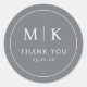 This Classic Round Sticker features a minimalist design with a clean, circular layout on a solid gray background. The prominent text "THANK YOU" is elegantly displayed in a classic serif font, conveying gratitude and sophistication. The balanced symmetry of the initials "M" and "K," separated by a vertical line, adds a touch of personalization to this modern and elegant sticker. Perfect for expressing appreciation, it's ideal for events or as a thoughtful gesture.