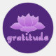 Nós amamos este design em um fundo roxo vibrante, mas você pode escolher toda a cor que você gostar (no chaveiro, em ímãs, em botões, em canecas e em outros produtos). Uma violeta macia e forte coloriu lótus, com a palavra "gratitude".