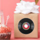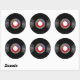 Adesivo redondo com uma imagem vintage de 1950 de um registro de 45 rpm. O rótulo do registro vermelho diz "Rock & Roll" em verde neon e azul. Veja a bolsa de favor e a etiqueta de favor. Veja a coleção inteira do Nifty 50 Sticker nos CONVITES | Seção Stickers & Labels