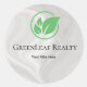 Green leaf Real estate white Marble custom Business Classic Round Sticker. Add a touch of timeless elegance to your space with our white marble collection. Designed for a clean, modern look, these products feature a sleek marble texture that blends luxury and simplicity. Perfect for professionals, home offices, or gift ideas — stylish, classy, and always on trend.
