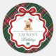 Adesivo Redondo Green Tartan Plaid Christmas Bear Birthday Favor