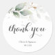 Personalize este "Casamento Botânico de Folhas Douradas de Verde, Obrigado Sticker". Personalize para combinar as cores e estilos do seu casamento.