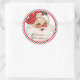 Estas etiquetas de presentes de riscas brancas e vermelhas de Natal festivas apresentam um design de tema de Papai noel. Para personalização mais avançada deste design, basta selecionar o botão "Personalizar" acima.