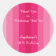Que maravilhosa, personalizada Obrigado Sticker por uma Festa de aniversário ou outra ocasião especial. Este adesivo festivo é decorado com um padrão de listras cor-de-rosa. Em cima, "Obrigado por Celebrar Conosco" (ou o seu texto personalizado), em letras brancas. Na parte inferior, Nome e Título do Evento. Um aniversário moderno, elegante e chic Obrigado Sticker. Todos os Direitos Reservados © 2017 Alan & Marcia Socolik.