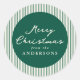 Feche seus cartões de natal e presentes com esses palitos de Natal da Moderna Greve Verde. A design apresenta "Feliz Natal" num guião verde manuscrito com o nome da sua família, apresentado abaixo em letras clássicas de serifa rodeadas por um quadro verde contra um fundo verde festivo e listrado de creme. Parte da nossa Coleção de Natal Moderna Stripes, estes adesivos adicionam um toque de remoção de na moda aos envelopes, pacotes e favores de festas de férias.