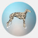 Imagem de greyhound tigrado em um fundo azul e cinza.