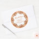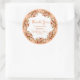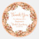 Uma grinalda de flores de pêssego em aquarela boho rústica e uma fonte de letra cursiva caprichosa com espirais decoram estes Adesivos Redondos de Agradecimento para Almoço de Noivado Florais de Pêssego.