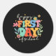 Adesivo Redondo Groovy Feliz Primeiro Dia Da Escola De Volta À Esc