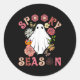 Adesivo Redondo Groovy Spooky Season Cute Ghost Segurando Pumpkin