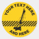 Silhueta de grua de construção. Dois campos de texto em círculo.