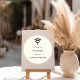 A Wi-Fi symbol. Add your wi-fi name and password for your customers/guests. Ivory background, black text.