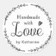 Adesivos e etiquetas personalizados Feitos à Mão com Amor para artesanatos, DIYs e produtos com o nome da sua marca personalizada com guirlanda botânica rústica em preto e branco e design de letra à mão.