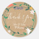 Guirlanda floral rústica de casamento agradecimento, adesivo redondo clássico com uma guirlanda floral moderna de flores da primavera em um fundo kraft rústico, este adesivo de casamento botânico chique pode ser personalizado com o nome da sua família. Perfeito para selos de envelope e adesivos de favor. Desenhado por Thisisnotme