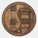Este design Yin yang único apresenta o corpo de um violão elétrico e acústico. As cordas das guitarras subem ambos os lados do padrão com os buracos circulares visíveis embaixo. Os corpos das guitarras tomam a forma da gota de lágrimas yin yang. Texturas grosseiras e cores naturais dão o padrão de ser esculpido de madeira envelhecida. Este belo símbolo de equilíbrio mostra a diferença entre guitarras elétricas e acústicas.