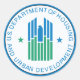 Habitação e desenvolvimento urbano. Este artigo é decorado com o selo do Departamento de Habitação e Desenvolvimento Urbano. "O Departamento de Habitação e Desenvolvimento Urbano dos Estados Unidos, também conhecido como HUD, é um departamento do Gabinete do Executivo do governo Federal dos Estados Unidos. Embora tenha começado na Câmara e na Agência de Financiamento do Interior, foi fundada como um departamento do Gabinete em 1965, como parte do programa "Sociedade do Excelente" do presidente Lyndon Johnson, para desenvolver e executar políticas sobre moradia e metrópoles" - Wikipedia