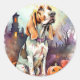 Adesivo Redondo Halloween Basset Hound Com Pumpkins Assustado