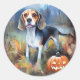 Adesivo Redondo Halloween Beagle Com Pumpkins Assustado